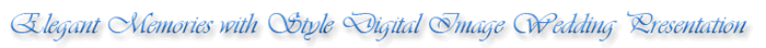 | - One Memories with Style digital DVD show. This is a 10-15 image show (1-2 minutes) introducing the bride and groom. It can be shared with anyone via the Internet. If you enjoy this short show you have the option to order a longer, more elegant show (see Memories with Style pricing options below). |
